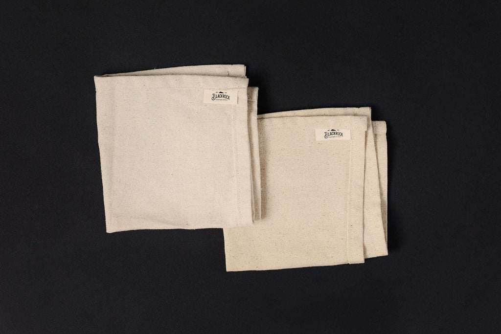 Our shop rags are cut, sewn, and pressed specifically for us using ethically sourced fabric.